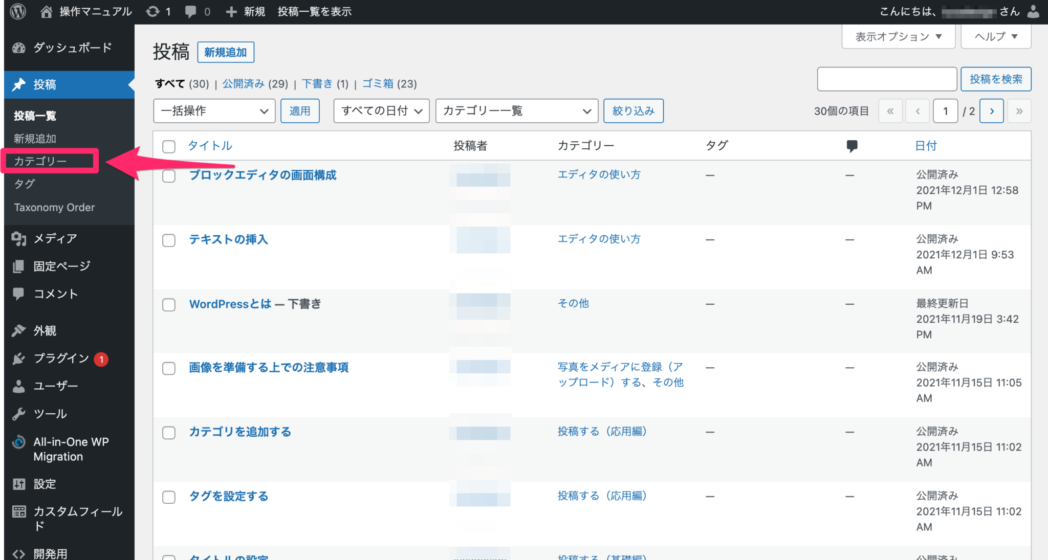 2)スラッグ:URLに表示されます。例)お知らせ→news