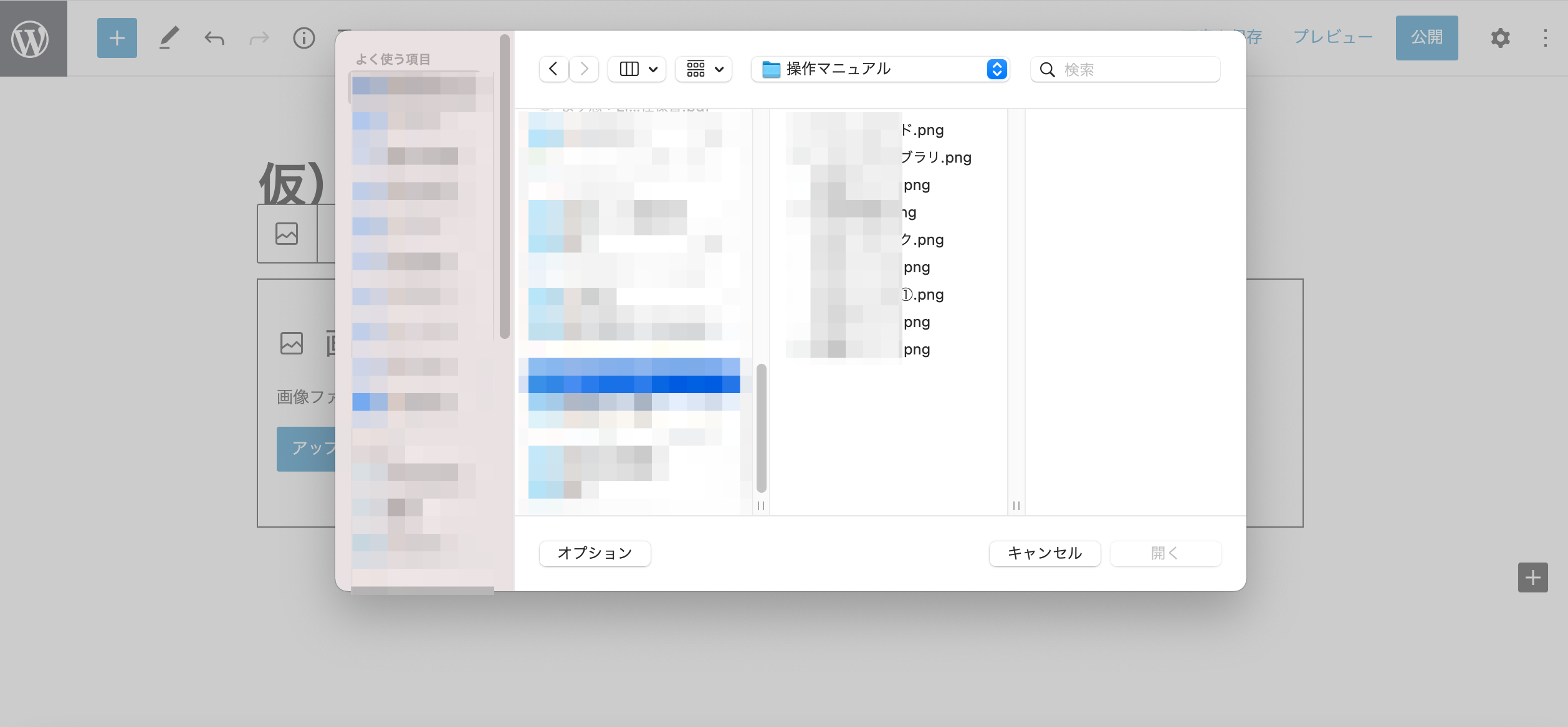 既に「メディアライブラリ」に登録された画像の中から選んで追加します。(メディアライブラリへの画像の登録方法はこちら)